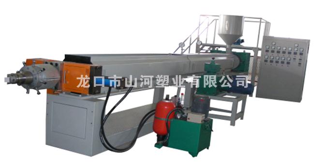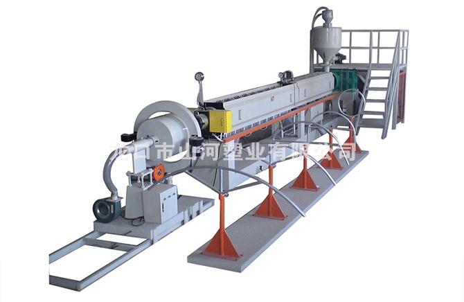 自動(dòng)上料單元—擠出機(jī)單元—發(fā)泡劑注入單元—抗收縮劑注入單元—自動(dòng)換網(wǎng)系統(tǒng)—擠出模頭單元—風(fēng)環(huán)—定型鼓單元—展平單元—牽引單元—收卷單元